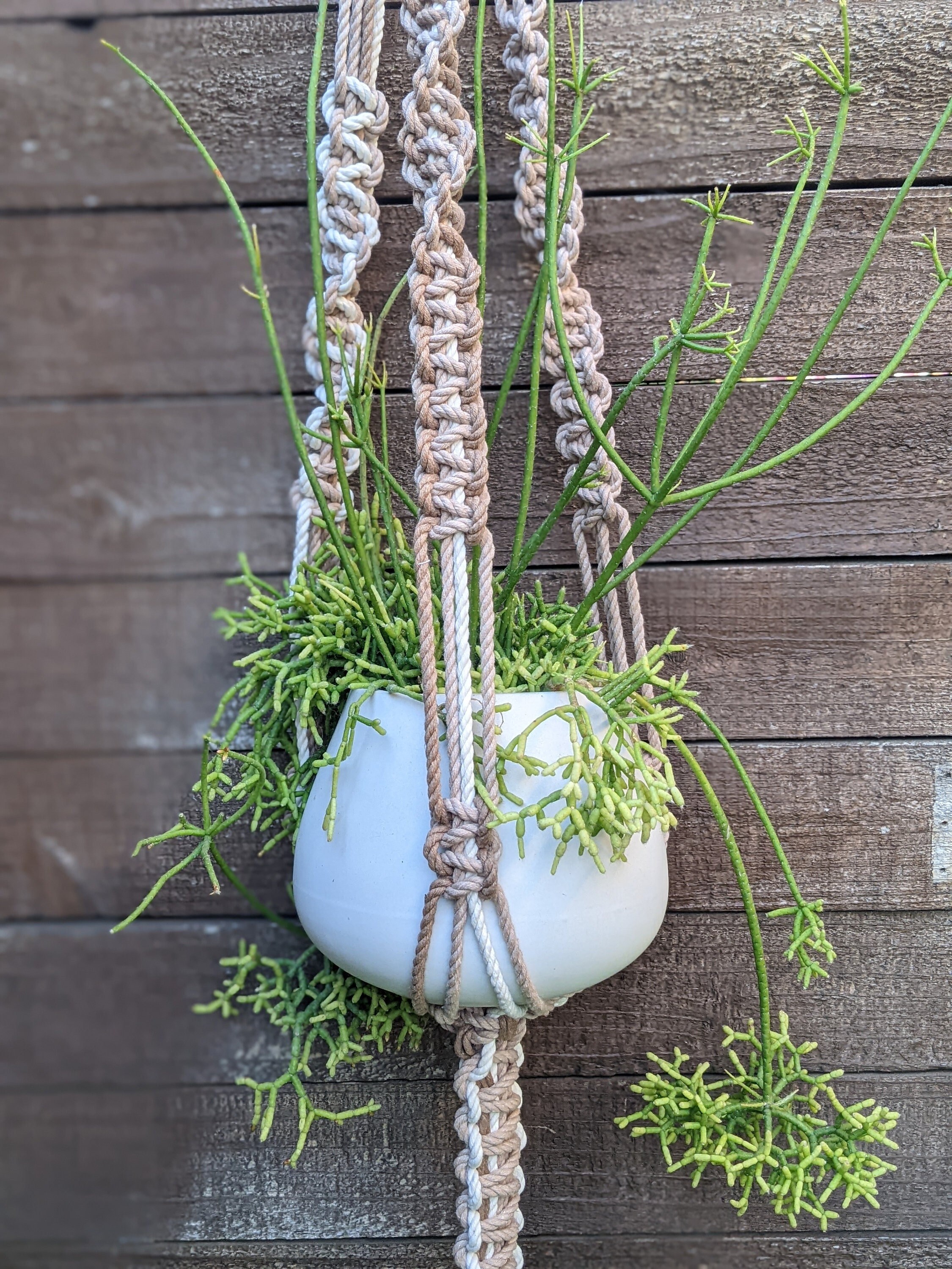Double Macrame Plant Hanger On Driftwood Macrame Plant Hanger Plant Hanger Diy Macrame Plant Hanger
