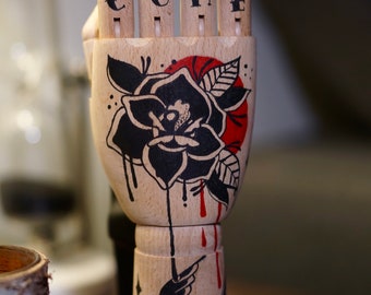 Dripping Rose Traditional Tattoo Art Wooden Hand Etsy Uk