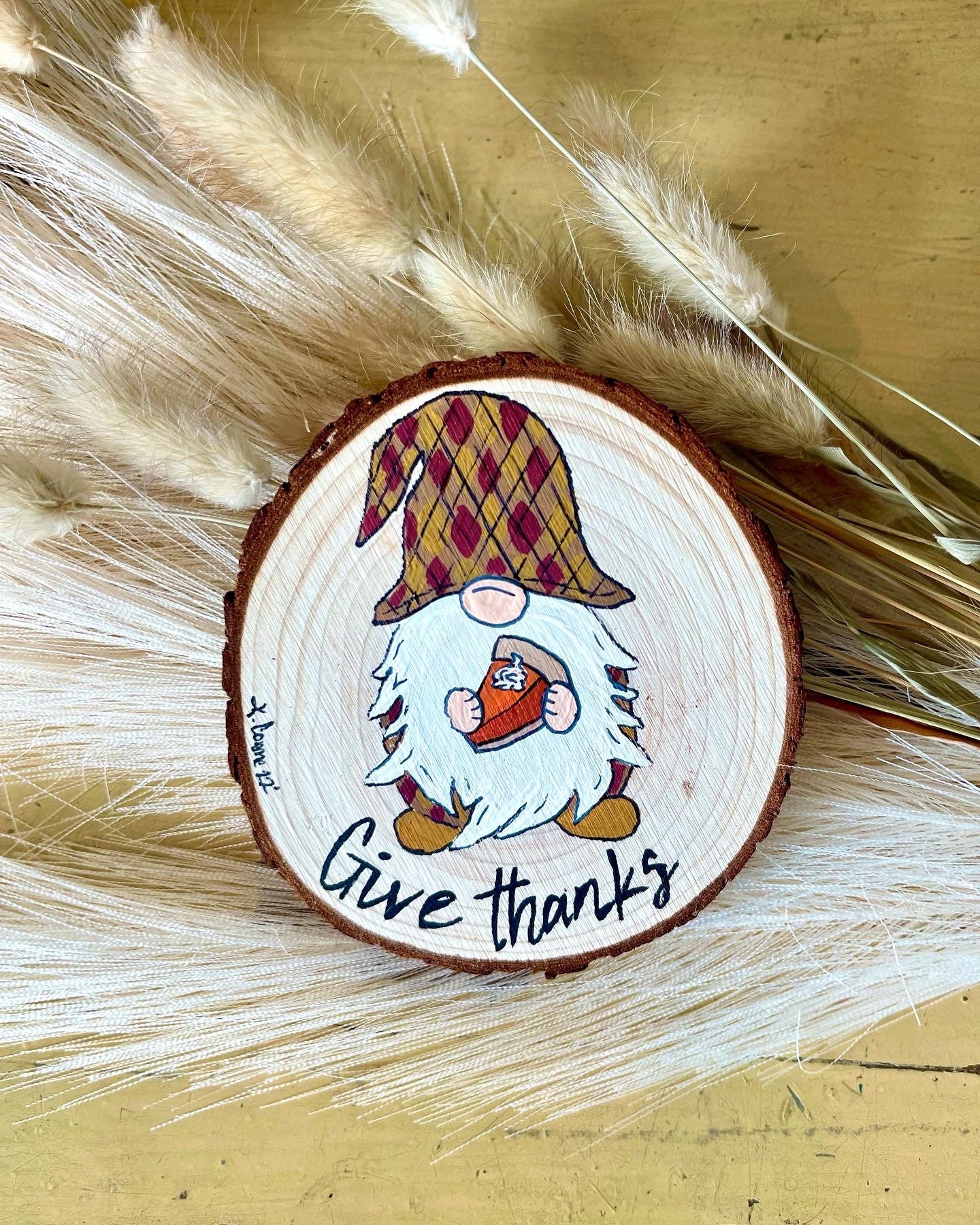 Painted Gnome On Wood Etsy